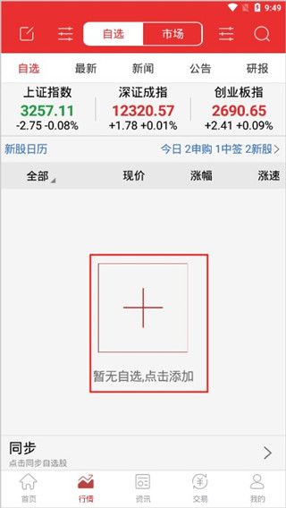 3、在“自选”中可以点击+进行自选;