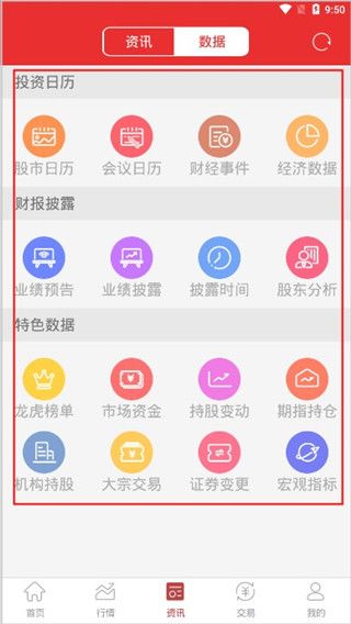 4、线面可以对投资日历、财报披露、特色数据进行设置;