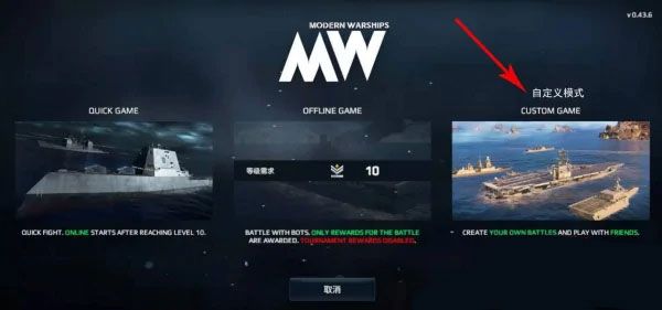 1、打开现代战舰游戏,点击进入战斗右边的按钮。