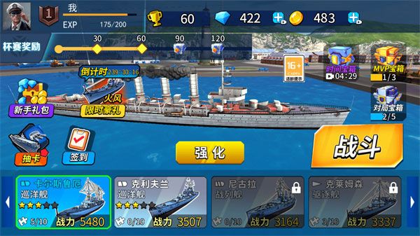 参加每周比赛并免费赢得奖品和奖励!完成日常任务和挑战,可获得更多奖励!出色的图形、最现代的图形、特殊效果、优美的海上战斗场所以及无可替代的海上战斗军事精神!