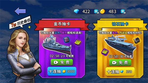 3、抽卡分为金币抽卡和钻石抽卡,而金币和钻石需要玩家在击败敌人即可获得;