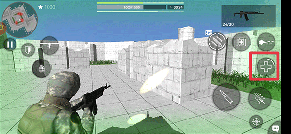 3、在游戏屏幕的右边是不断的射击键位还有趴下跳跃键位,非常方便。