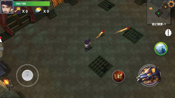 针对游戏的玩法,其实还算是比较的中规中矩,左侧摇杆,右侧的射击、滚闪、技能和随机配置的道具也让游戏整体更加的独特有趣,虽然操作不是特别的难,但各种层次难度的关卡挑战,以及不可预测的迷宫战斗玩法也让游戏更加的精彩有趣。
