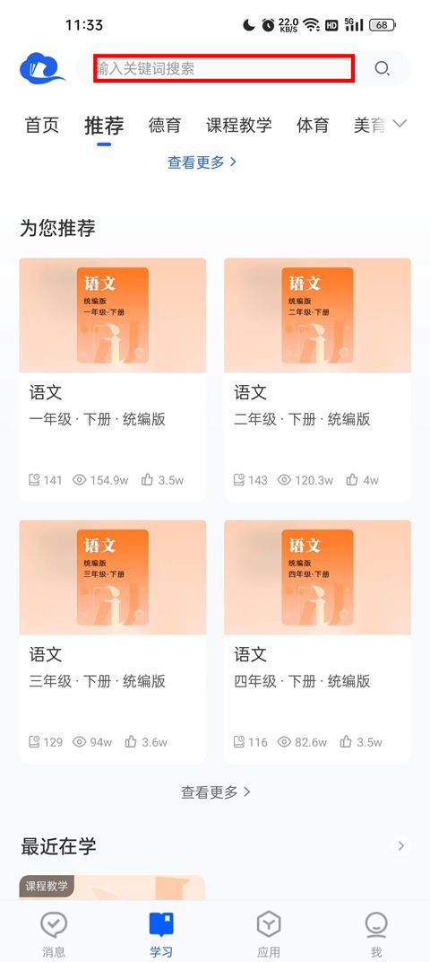 3、点开你需要学习的内容,可以点击上方进行搜索,也可以在分类中进行查找;