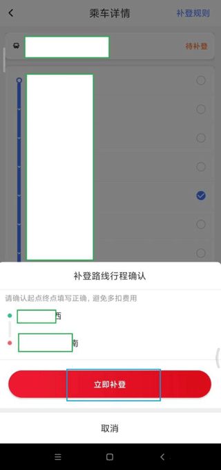 4、补登路线行程确认无误后点击【立即补登】