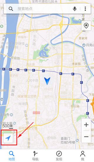 3、定位成功,“箭头”变为蓝色,图中心出现你的当前坐标。