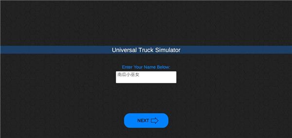 1、打开环球卡车模拟器,首先需要设置游戏昵称,输入自己喜欢的昵称后,选择【NEXT】选项,