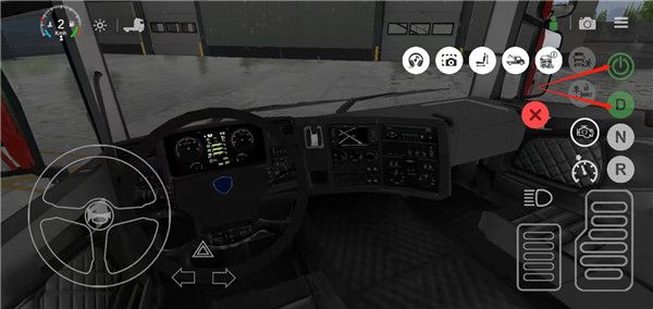 7、如图,进入主驾驶视角,点击【电源】和【D字母】按钮可以启动车辆,