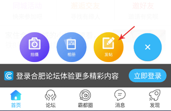 2、接着在出现的选项中点击选择“发帖”即可进行帖子的发布了。