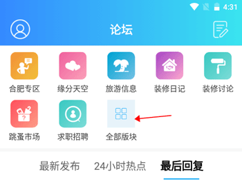 1、首先我们进入到“论坛”界面,在该界面点击“全部板块”。