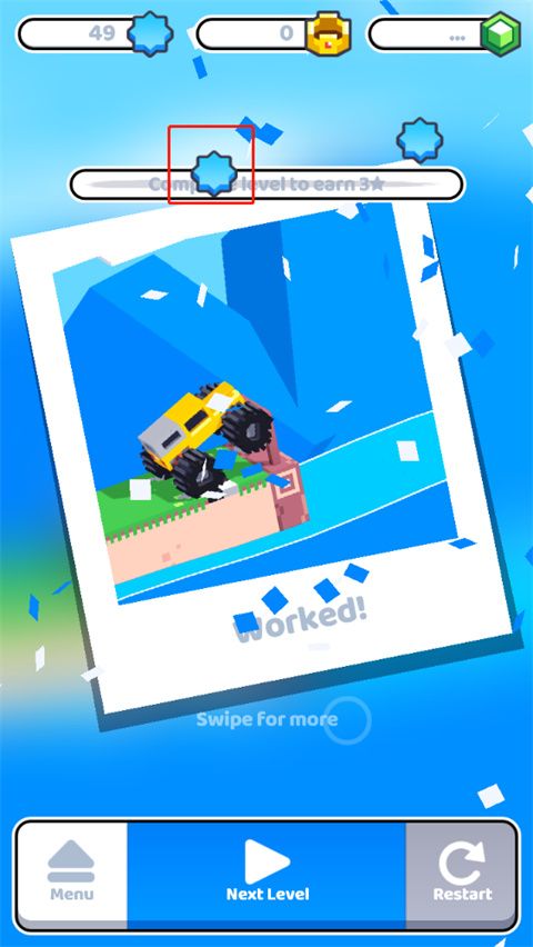 4、如图,当图标内的关卡都通关后,会在图标上方升起一面小旗帜代表已经通关了,
