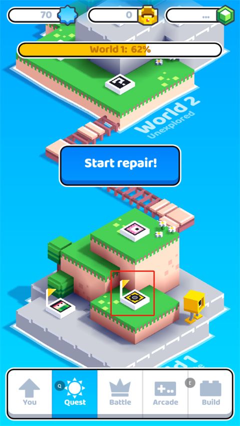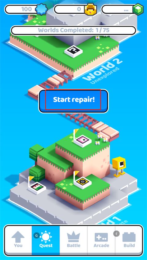 5、当玩家获得足够的经验时,选择【Start repair】就可以解锁后面的关卡图标了,以上就是fancade最新版游戏攻略。