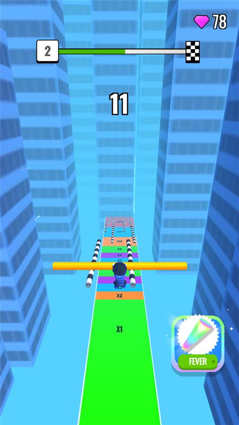 1、每个玩家都会控制自己可爱的小个子在楼顶来回穿梭,展示实力,尽可能多的收集地上的棍子。只有当你手中的棍子越来越长,你才会有更多的希望。
